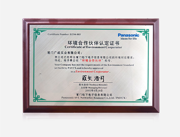2005.Panasonic “環(huán)境合作伙伴”稱號